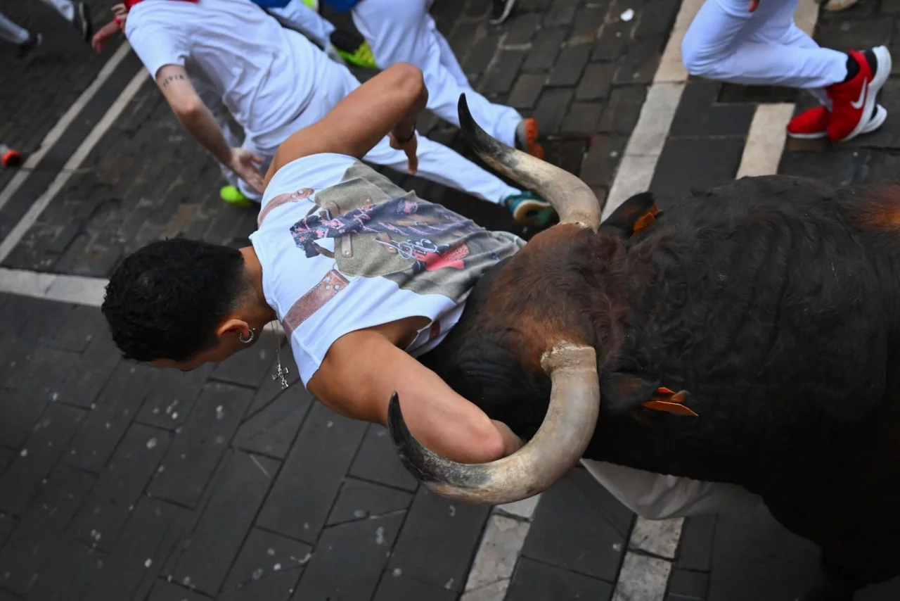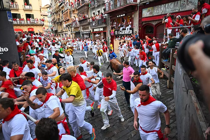 Für «Panik», wie die Zeitung «El Mundo» schrieb, sorgte am zweiten von insgesamt acht Stierhatz-Tagen vor allem der 575 Kilogramm schwere Kampfbulle «Caminante» (Wanderer). Der eigenwillige Stier weigerte sich immer wieder, mit den anderen Kampfbullen in die Arena getrieben zu werden, und attackierte zahlreiche Läufer, wie in der TV-Liveübertragung zu sehen war. Der Lauf dauerte daher mit fünf Minuten und 22 Sekunden etwa doppelt so lange wie üblich.