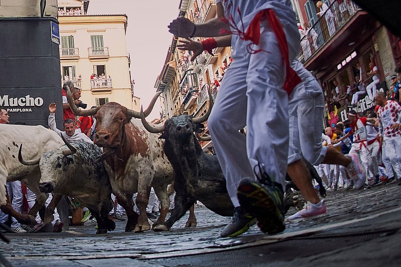 Die «Sanfermines» sind dem Stadtheiligen San Fermín gewidmet und werden in der 200.000-Einwohner-Stadt der Region Navarra bereits seit Ende des 16. Jahrhunderts immer in der ersten Juli-Hälfte gefeiert. Täglich werden am frühen Vormittag sechs Kampfbullen und mehrere zahme Leitochsen durch die engen Gassen der Altstadt für die Stierkämpfe am Abend bis in die Arena gejagt. Der letzte Lauf findet dieses Jahr - wie immer - am 14. Juli statt.