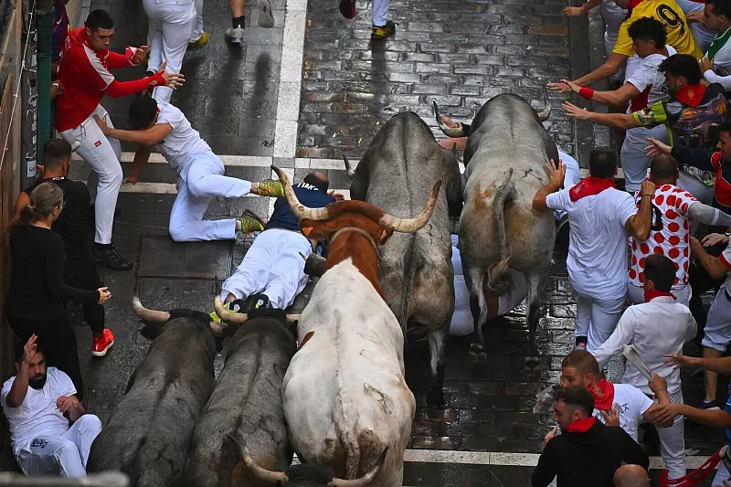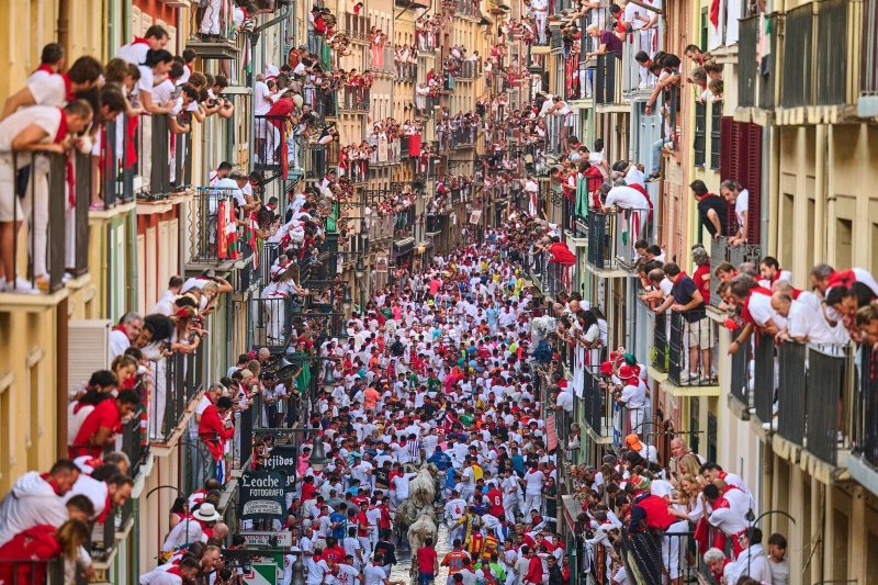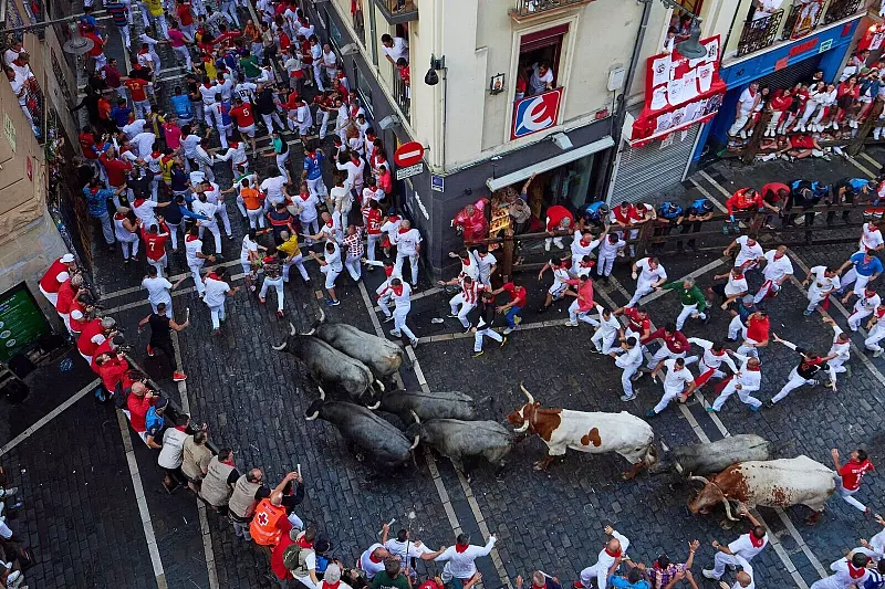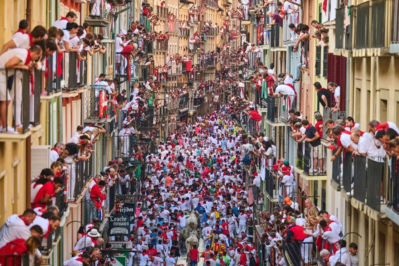Die «Sanfermines» sind dem Stadtheiligen San Fermín gewidmet und werden in der 200.000-Einwohner-Stadt der Region Navarra bereits seit Ende des 16. Jahrhunderts immer in der ersten Juli-Hälfte gefeiert. Täglich werden an acht Tagen in Folge am frühen Vormittag sechs Bullen und mehrere zahme Leitochsen durch die engen Gassen der Altstadt für die Stierkämpfe am Abend bis in die Arena gejagt.