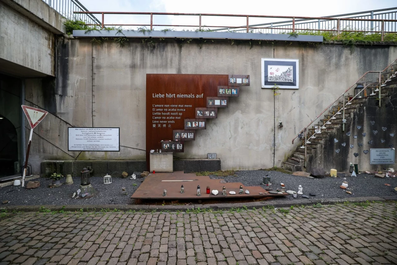 Kerzen brennen, daneben stehen Bilder der vielen Toten, Autos brausen laut durch den Tunnel: Ein besinnlicher Ort ist die Gedenkstätte für die Opfer der Loveparade-Katastrophe in Duisburg nicht. Aber es ist der Ort, an dem das tödliche Gedränge seinen Lauf nahm. Genau hier wurden vor 15 Jahren am 24. Juli 2010 Hunderte Menschen verletzt, 21 Menschen starben in der Massenpanik. Alle waren junge Leute, die bei dem Techno-Festival ausgelassen feiern und tanzen wollten.