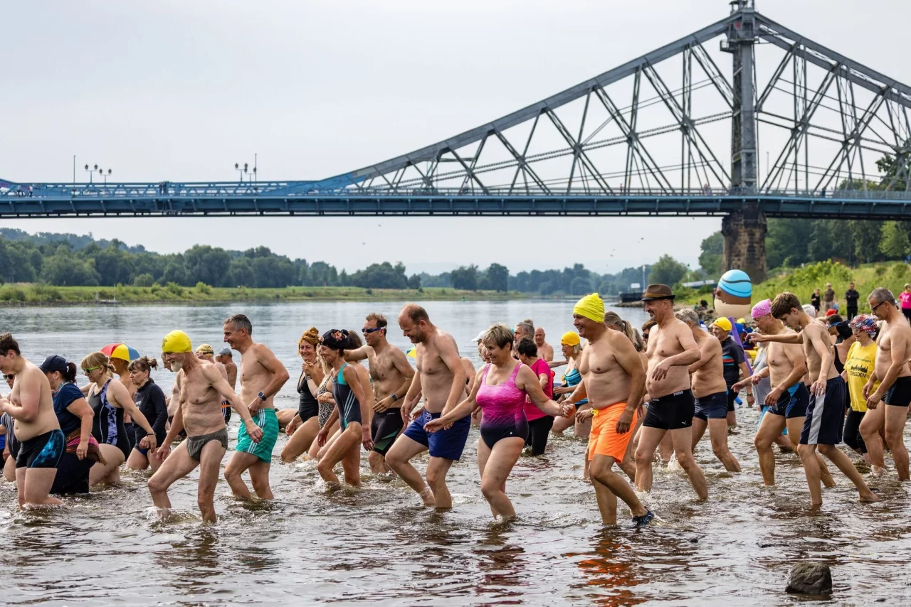 Wenn sich Hunderte Menschen teilweise bunt kostümiert in die Elbe stürzen, dann ist Elbeschwimmen in Dresden. Die traditionelle Veranstaltung fand heute zum 28. Mal statt. Die Schwimmerinnen und Schwimmer legten bei 21,5 Grad Wassertemperatur eine Strecke von 3,5 Kilometern mit der Strömung des Flusses zurück.