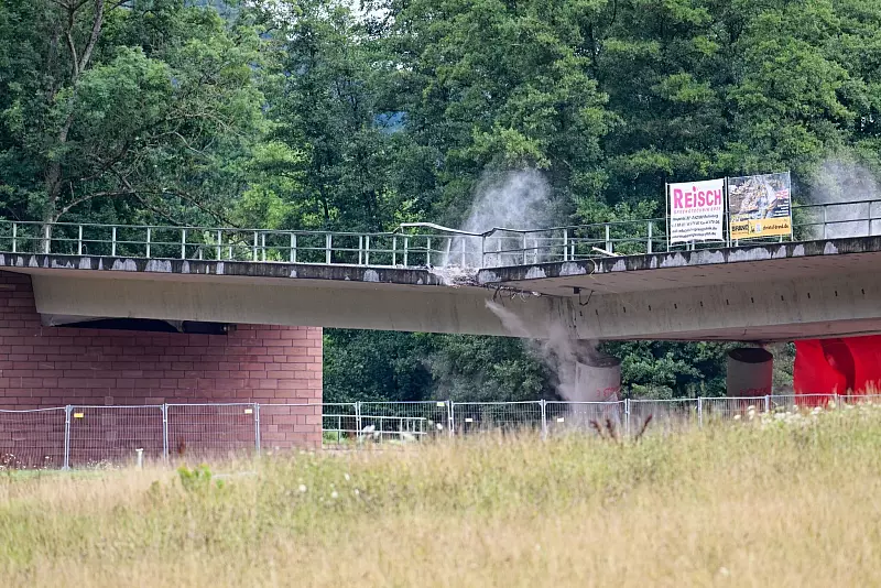 «Das ging am Schnürchen, so wie geplant, Haken setzen, alles gemacht», sagte Sprengmeister Richard Lankes. «Ich bin sehr zufrieden jetzt heute.» Zwei Hornsignale, ein kurzer Countdown: Um 11.01 Uhr besiegeln Detonationen das Ende der Brücke. «Die Herausforderung war fast die Schnelligkeit, weil Hessen Mobil alles möglich gemacht hat und wir in kürzester Zeit alles vorbereiten konnten und die Sprengungen durchgeführt haben.»
