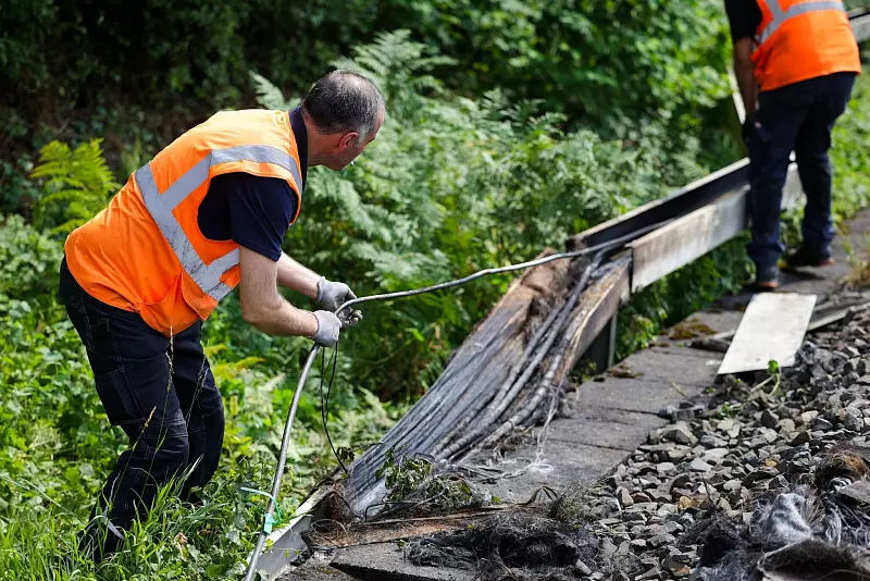 Das den Ermittlern zufolge vorsätzlich gelegte Feuer hatte die Strecke der Deutschen Bahn zwischen Duisburg und Düsseldorf lahmgelegt - mit 700 bis 800 Verbindungen täglich im Fernverkehr eine der wichtigsten bundesweit. Es komme zu erheblichen Beeinträchtigungen des Zugverkehrs, sagte ein Bahnsprecher. Die Störung werde voraussichtlich noch bis Freitagmittag andauern. Es seien noch zwei weitere beschädigte Kabel entdeckt worden. Dadurch werde die Reparatur noch aufwendiger als zunächst befürchtet.