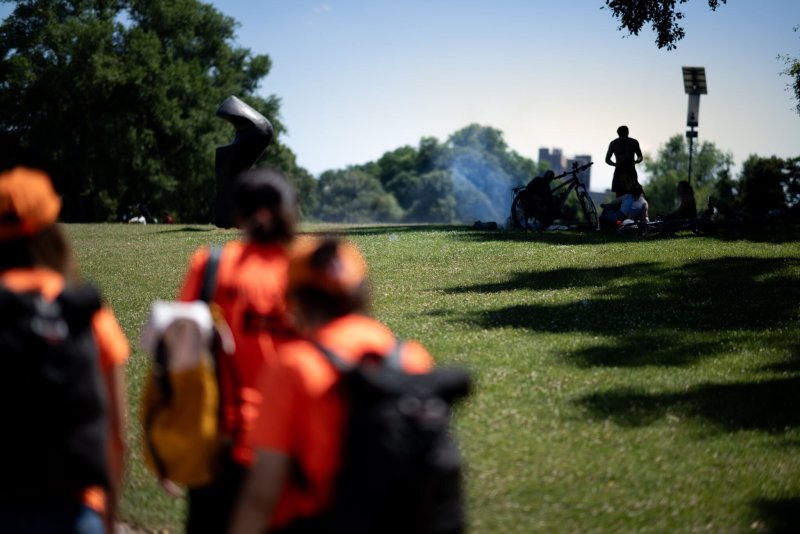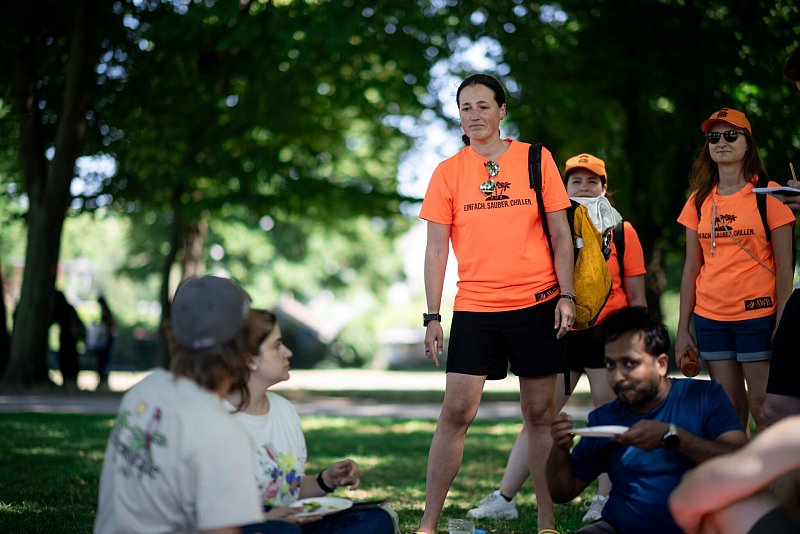Die drei jungen Frauen, neon-orange gekleidet und mit Müllsäcken ausgestattet, haben einen Job mit besonderem Profil: Sie arbeiten als Grill-Scouts. Das bedeutet, dass sie im Auftrag der Abfallwirtschaftsbetriebe Köln durch Parks streifen und Menschen ansprechen, die dort Steaks, Würstchen oder Grillkäse brutzeln. Das Ziel: einfach mal reden - und so die Grünanlagen sauber halten.