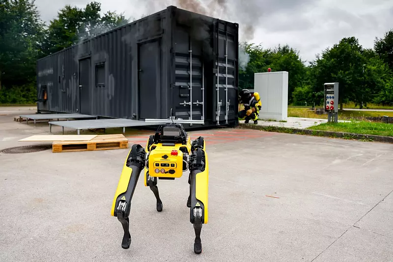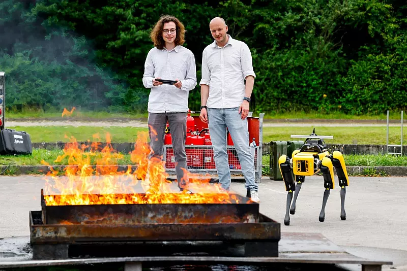 Heise demonstriert in einem Feuercontainer, wie sich Rauch bei einem Brand entzünden kann. «Wir versuchen mit dem Roboter erst einmal, das Feuer zu verstehen», sagt Pirk. Die KI müsse lernen, die Flammen zu interpretieren. «Wie wir das als Menschen auch lernen, nicht zu nah an ein Feuer ranzugehen.»