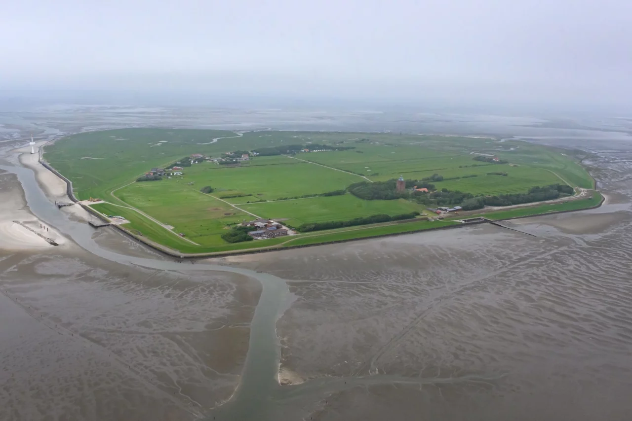 Als «Hamburger Juwel» bezeichnete Umweltsenatorin Katharina Fegebank (Grüne) die Nordseeinsel. Der etwa 120 Hektar große Inselkern ist von einem mehrere Meter hohen Deich umgeben.