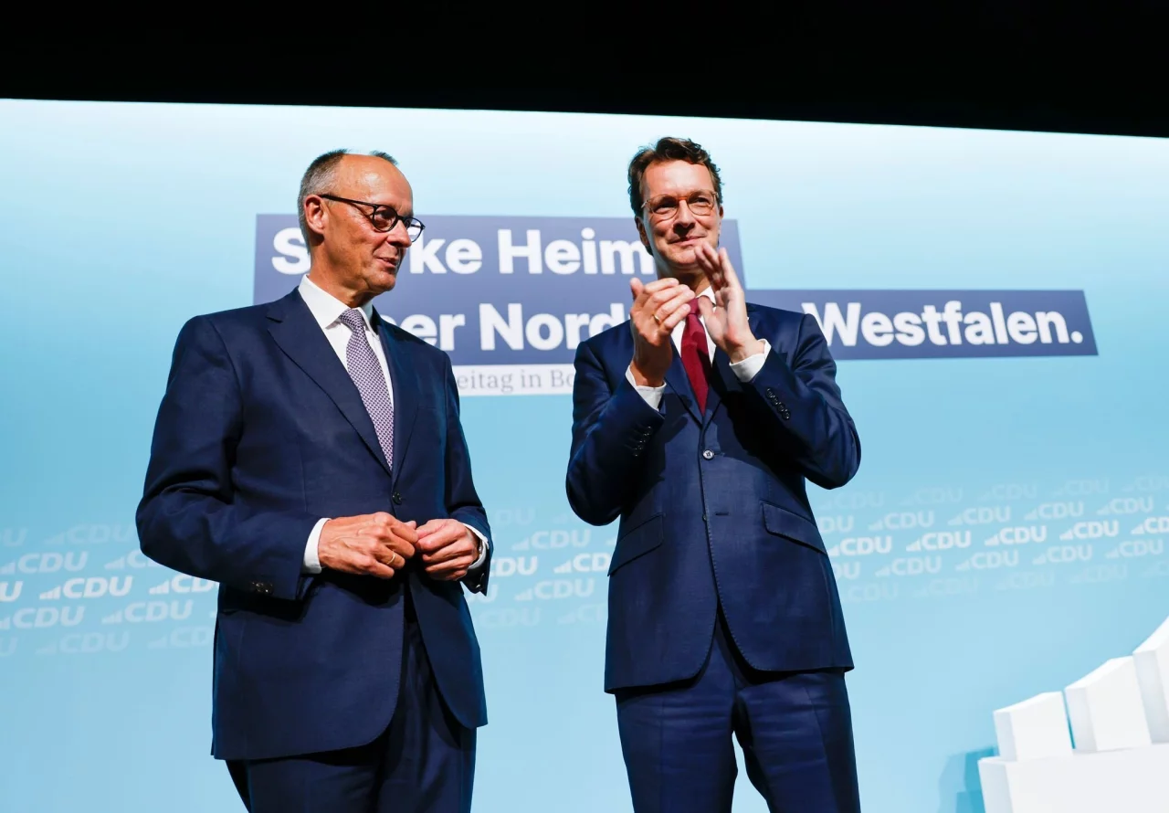 Bonn. Mit schmissigen Bässen wird Ministerpräsident Hendrik Wüst begrüßt - und natürlich mit Beifall. Denn anders als in der CDU/CSU-Bundestagsfraktion, wo es vor der Sommerpause doch sehr rumpelte, geht es im NRW-Landesverband eher entspannt zu. Die schwarz-grüne Koalition in Düsseldorf regiert geräuschlos vor sich hin und Generalsekretär Paul Ziemiak ist stolz, dass er eine Reihe CDU Schwergewichte aus Land und Bund zum Landesparteitag begrüßen kann. Alles NRW-Gewächse. CDU-Generalsekretär Carsten Linnemann aus Paderborn, Jens Spahn, Andre Kuper aus Rietberg, natürlich den Landesvorsitzenden Hendrik Wüst und als Höhepunkt: Bundeskanzler Friedrich Merz.