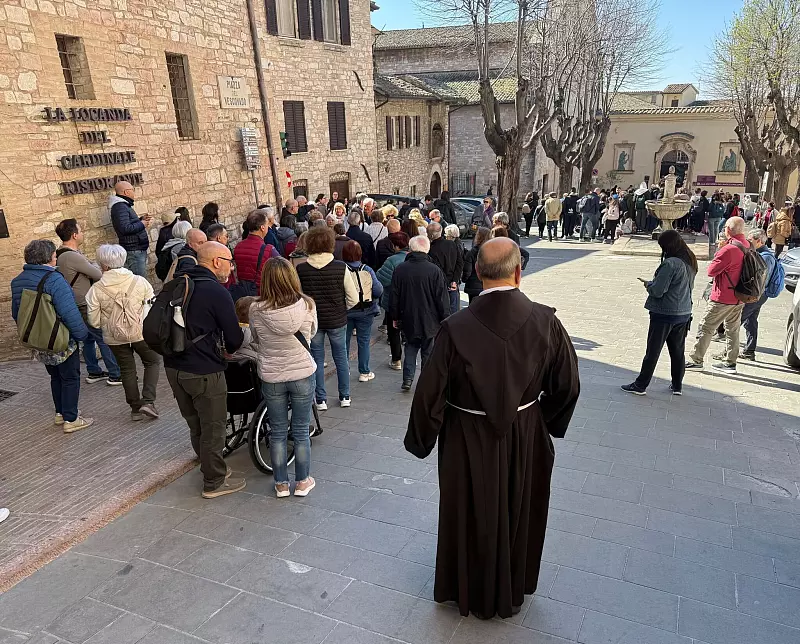 Auf dem Corso Giuseppe Mazzini, im Zentrum von Assisi, haben sie mit dem Devotionalienhandel große Erfahrung. Hier werden seit vielen Jahrzehnten Andenken an den Mann verkauft, der den kleinen Ort in Umbrien weltweit bekannt gemacht hat und dort auch begraben liegt: der Heilige Franz von Assisi (1181-1226). Das Geschäft mit Holzfiguren, Bildern und Rosenkränzen läuft bestens. Die Souvenirshops reihen sich dicht an dicht.