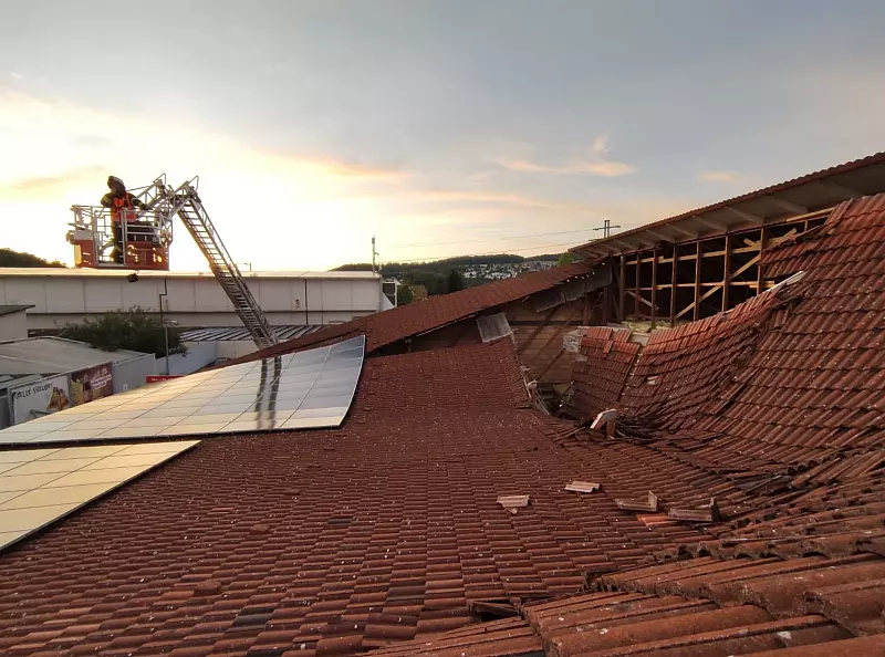Teile eines Supermarktdachs sind im Süden von Baden-Württemberg eingestürzt - dabei sind vier Menschen verletzt worden. Nach Angaben eines Polizeisprechers erlitten zwei von ihnen schwere Verletzungen. Wer genau unter den Opfern ist, bleibt bis zu späten Abend unklar.
