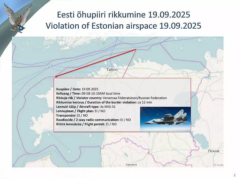 Das estnische Verteidigungsministerium veröffentlichte daraufhin eine Karte mit der Flugroute der drei Maschinen vom Typ MiG-31. Demnach flogen die Russen nicht in dem schmalen internationalen Korridor über dem Finnischen Meerbusen, sondern etwa zehn Kilometer tief im estnischen Luftraum. Die Jets der Russen seien schließlich von Nato-Kampfflugzeugen aus Italien aus dem Luftraum eskortiert worden, hieß es.