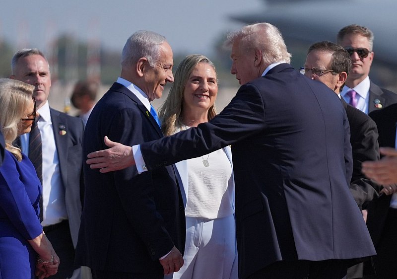 Der Erfolg für diese Etappe ist stark auf die Person Trump zugeschrieben. Zwar erwähnt er die Leistung anderer Vermittlerländer - doch ertönt in Sprechchören auf Israels Straßen vor allem ein Name: «Thank you, Trump.» Bei seiner Ankunft auf dem Flughafen bei Tel Aviv liegt ein roter Teppich ausgerollt. Trump reckt beim Aussteigen eine Faust in die Luft. Die Übereinkunft «könnte die größte Sache sein, in die ich jemals involviert war», sagte Trump davor einem Reporter der US-Nachrichtenseite «Axios». Im israelischen Parlament bekommt er minutenlangen Applaus.