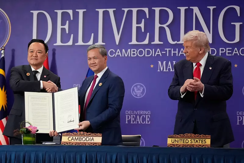 Drei Monate nach den schweren Kämpfen im Grenzgebiet zwischen Thailand und Kambodscha haben beide Länder im Beisein von US-Präsident Donald Trump ein Friedensabkommen unterzeichnet. Der thailändische Ministerpräsident Anutin Charnvirakul und sein kambodschanischer Amtskollege Hun Manet besiegelten die Vereinbarung am Mittag (Ortszeit) in der malaysischen Hauptstadt Kuala Lumpur. Trump war dort kurz zuvor als Gast des Gipfeltreffens der südostasiatischen Staatengemeinschaft Asean gelandet - es ist die erste Station seiner mehrtägigen Asienreise.