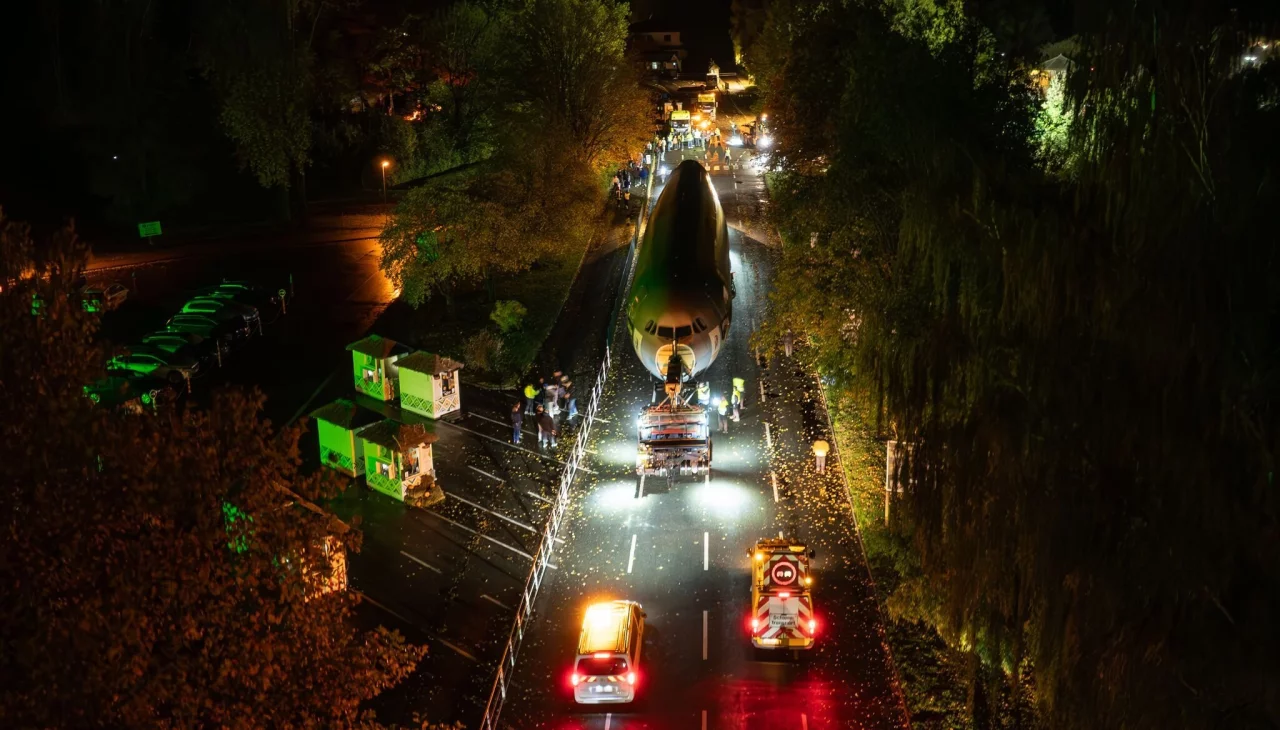 Die Transportstrecke führte auf einer Länge von rund 1,8 Kilometern durch das Landschaftsschutzgebiet. Das Absenken des Rumpfes von 6,80 Metern auf 5,90 Meter sollte Schäden an Bäumen verhindern. Die abmontierten Tragflächen und das Höhenleitwerk wurden bereits zuvor in den Park gebracht.