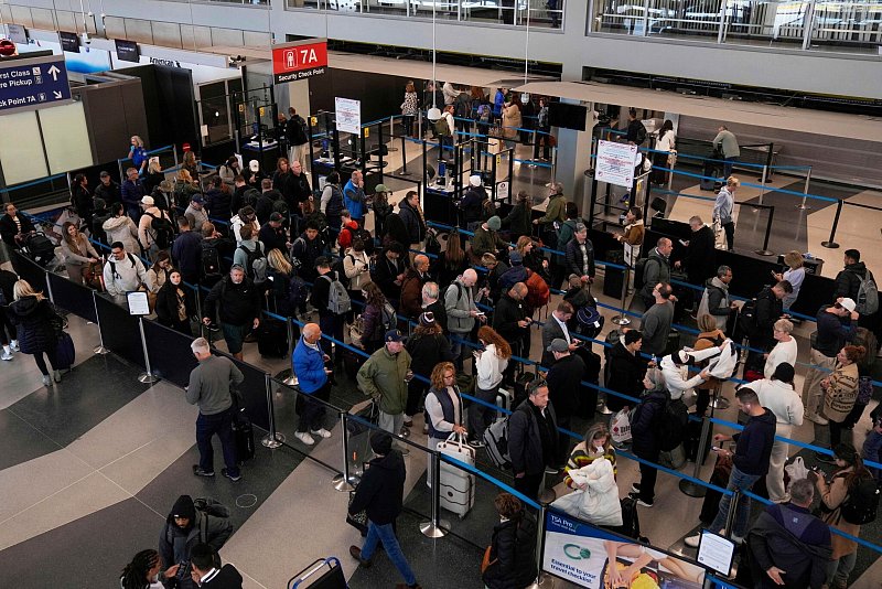 Lange Schlange wegen des Shutdowns am Flughafen Chicago. - © Erin Hooley/AP/dpa