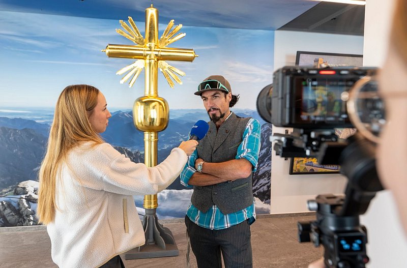 Das berühmte goldene Gipfelkreuz an der Zugspitze strahlt nicht mehr in vollem Glanz. Es ist mit Hunderten Stickern beklebt, mit denen sich Besucher auf Deutschlands höchstem Berg verewigt haben. Nun muss es restauriert werden.