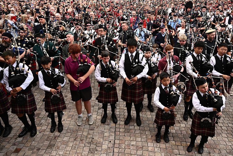 Ganz junge Teilnehmer waren ebenso dabei wie ein 98-Jähriger, der seit 84 Jahren Dudelsack spielt. - © Joel Carrett/AAP/dpa