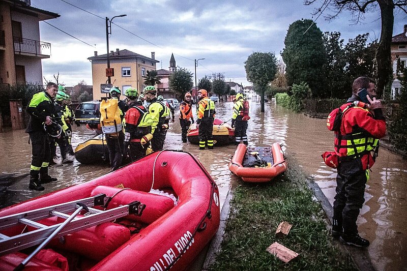 In der Region hatte es in den vergangenen Tagen heftig geregnet. Zahlreiche Straßen sind überschwemmt. Viele Keller stehen unter Wasser. (© Vigili del Fuoco/dpa)