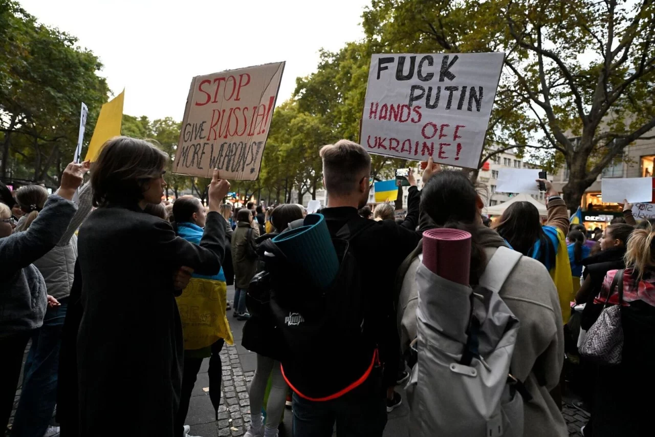 All die Bomben hätten Zivilisten getroffen, sagte die stellvertretende Vorsitzende des Vereins, Julia Chenusha. Nach den Angriffen habe man kurzfristig die Kundgebung unter dem Titel «Stoppt Russland. Stoppt Genozid» anberaumt. Der Verein forderte, die Ukraine «mit allen notwendigen Waffen, einschließlich Panzern und Luftabwehrsystemen» auszustatten, Wirtschaftssanktionen gegen Russland zu verstärken und ein beschleunigtes Beitrittsverfahren der Ukraine zu Nato und EU zu unterstützen.