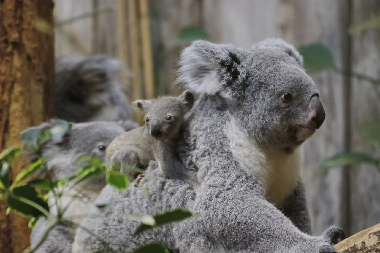 Kleiner Koala im Duisburger Zoo wagt sich aus dem Beutel