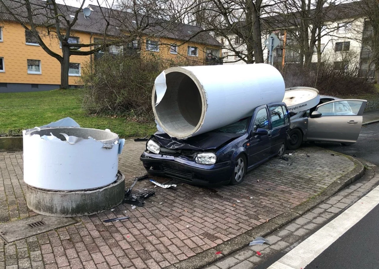 Autofahrerin unter Drogen fährt Litfaßsäule um