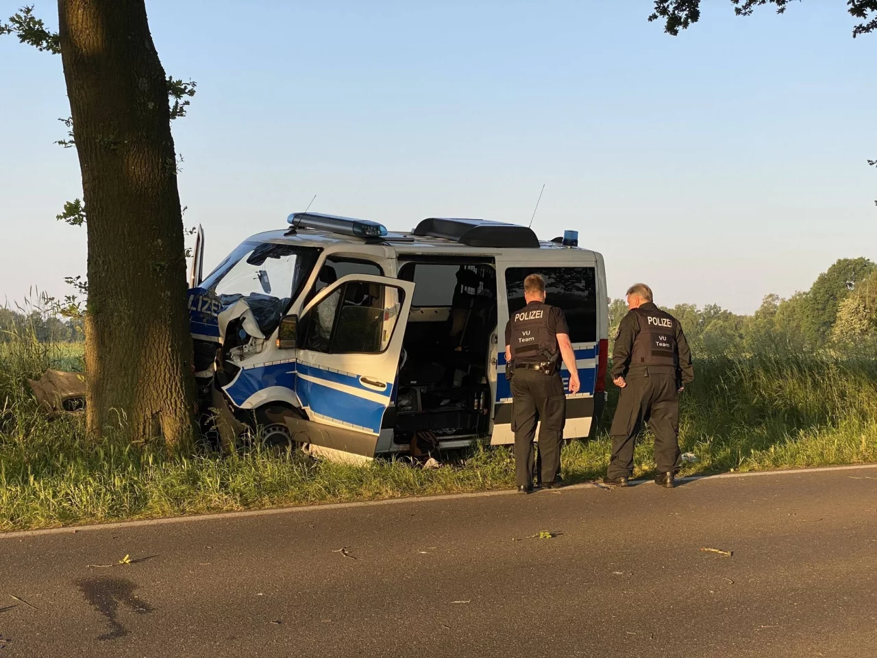 Der Wagen einer Hundertschaft war den Angaben zufolge am frühen Morgen auf dem Rückweg von einem Einsatz, als er in einer leichten Linkskurve von der Straße abkam und gegen den Baum krachte. Die Ermittlungen laufen.
