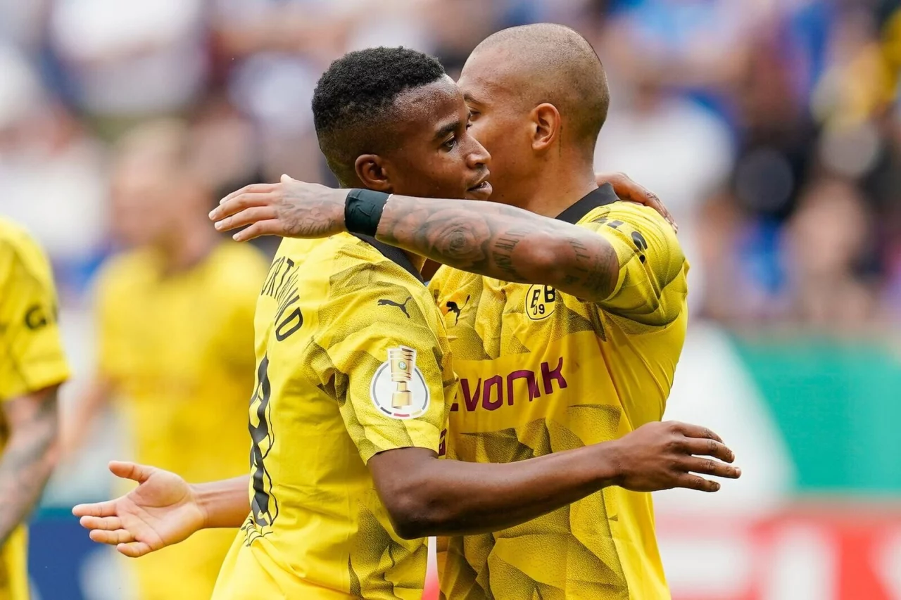 Vor 30 312 Zuschauern erzielten Sébastien Haller (22. und 35. Minute), Julian Brandt (24.), Marcel Sabitzer (57.), Donyell Malen (79.) und Youssoufa Moukoko (85.) die Tore für das klar überlegene Team von Trainer Edin Terzic. Nils Gans (34.) gelang für den krassen Außenseiter der umjubelte Ehrentreffer.