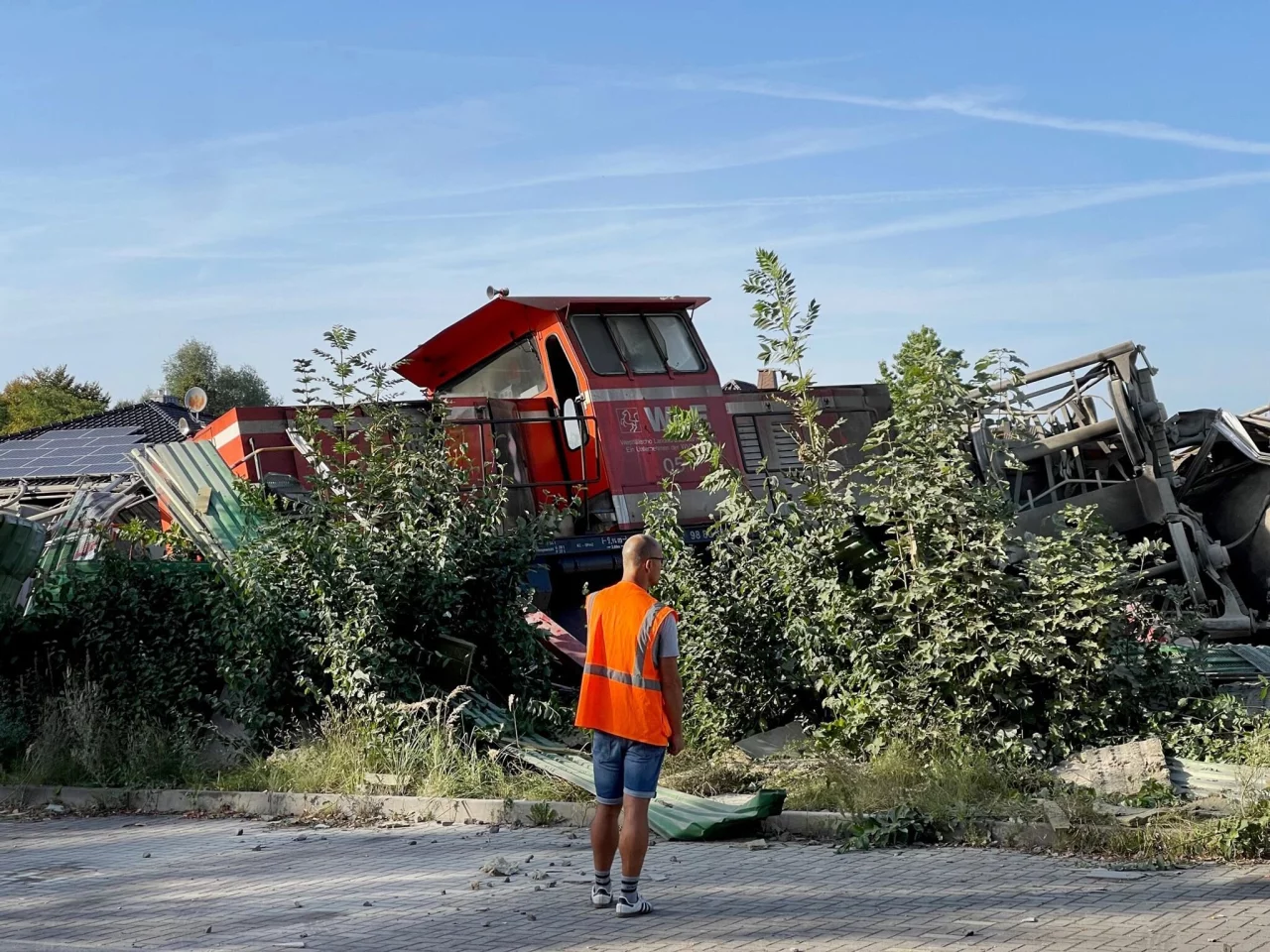 Auf Bildern von der Unglücksstelle sind stark beschädigte Waggons zu sehen, die auf der Seite liegen. Auch ein Zaun ist beschädigt. Die Deutsche Bahn sprach den Angehörigen des Unfallopfers ihr tiefes Mitgefühl aus.