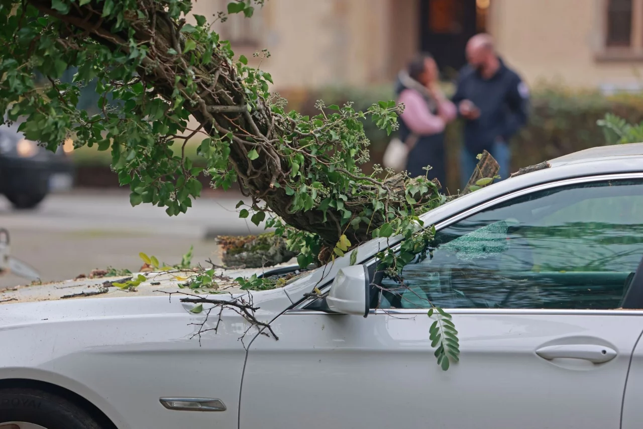Die Polizei im Märkischen Kreis berichtete von mehreren Einsätzen wegen umgestürzter Bäume und warnte vor umherfliegenden Gegenständen. «Seien Sie also heute früh besonders vorsichtig unterwegs», schrieb sie im Kurznachrichtendienst X (vormals Twitter). Mehr als 40 Einsätze wegen des Sturms meldeten jeweils die Feuerwehren aus Aachen und Dortmund. In Rheinberg im Kreis Wesel stürzte ein Ast auf ein vorbeifahrendes Auto. Der Fahrer erlitt einen Schock, wie ein Polizeisprecher berichtete. Bei Haltern wurde ein Lastwagen beschädigt, weil ein Baum auf ihn stürzte.