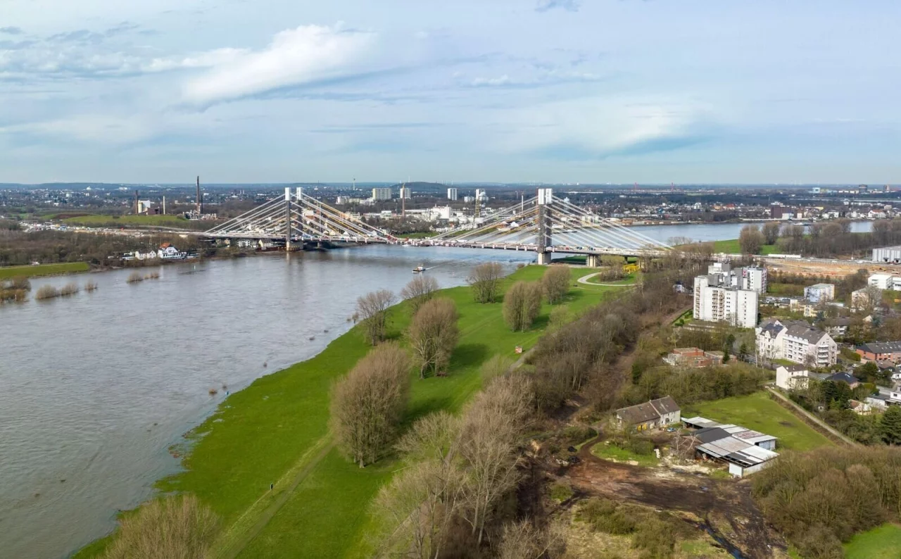 Die Brücke zwischen dem Ruhrgebiet und dem Niederrhein sowie den Niederlanden wird laut Deges im Schnitt täglich von mehr als 100 000 Fahrzeugen genutzt. Fertiggestellt wurde jetzt die erste Hälfte des Brückenbauwerks, eine zweite Hälfte soll bis 2026 folgen.