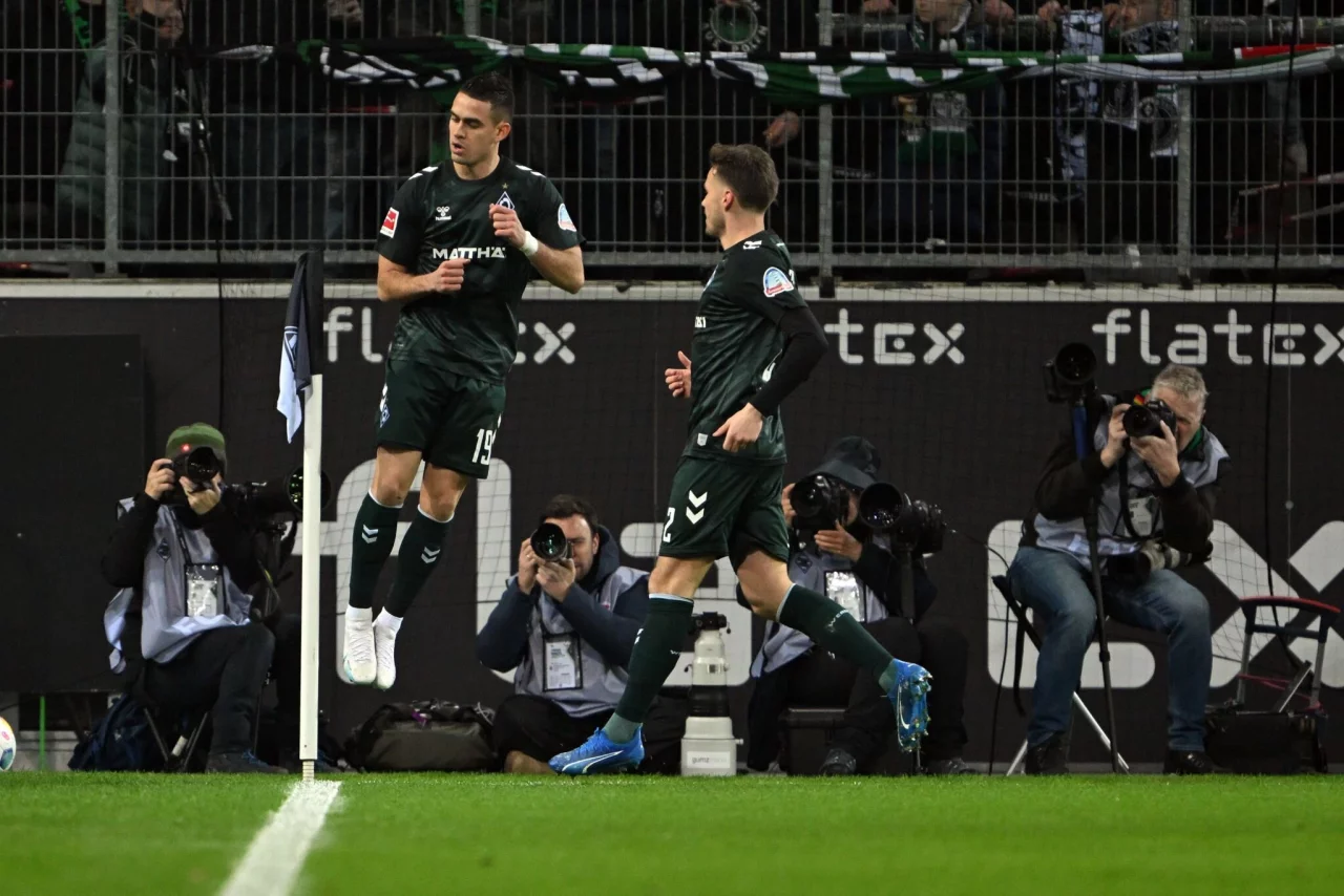 Bis dahin hatte für beide Mannschaften keine üblichen Anfeuerungsrufe gegeben. Stattdessen waren in beiden Fankurven verschiedene Protestbanner zu sehen. «Stille Wasser sind tief! Wir werden kein Teil eures Deals sein - Scheiss DFL!», war auf einem Banner in der Gladbacher Nordkurve zu lesen. Im Bremer Block war zu lesen: «DFL: Abstimmung gewonnen. Seele endgültig verloren!»