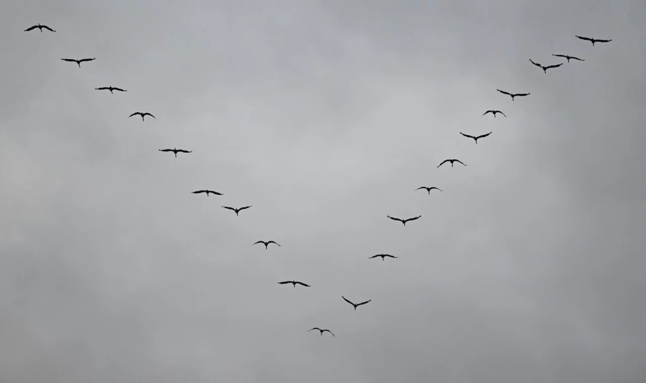 Den ganzen Februar über dauere der Kranichzug, erklärte der Nabu. Es seien Hunderttausende Tiere, die über den Monat verteilt fliegen.