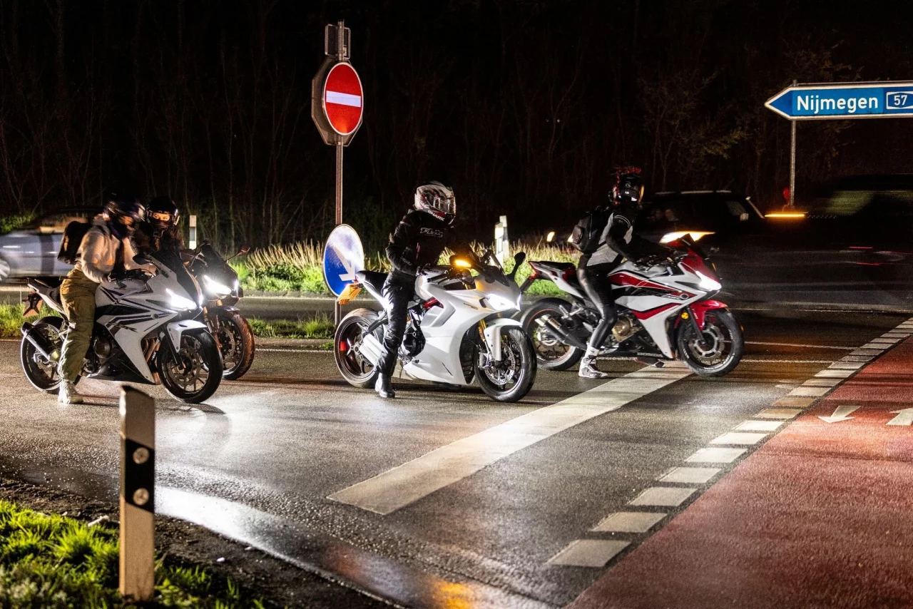 Etwa 15 Kilometer hinter der deutsch-niederländischen Grenze im Ort Cuijk kamen dann später am Freitagabend insgesamt 6000 Autos zusammen, sagte ein Pressesprecher der niederländischen Polizei der dpa vor Ort. Rund 10.000 Menschen hätten sich versammelt. Mit der Unterstützung deutscher Beamter der Bundespolizei sei das Treffen aufgelöst worden. Dabei seien den Angaben der Polizei zufolge Hunderte Platzverweise erteilt worden. Es wurden außerdem etwa 50 Bußgelder verteilt. Die Personen müssen mit Geldstrafen von bis zu 450 Euro rechnen.