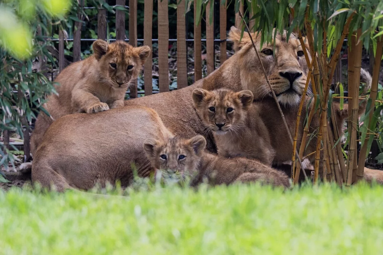 Munter, proper und neugierig - Besucherinnen und Besucher des Kölner Zoos können ab sofort die drei Ende Januar geborenen Löwen beobachten. Die Männchen Mani und Nilay und das Weibchen Laya zeigten sich am Dienstag erstmals gemeinsam mit Mutter Gina im Außenbereich des Löwengeheges. Dort werden Besucher den dem Zoo zufolge ersten Löwennachwuchs seit 20 Jahren künftig regelmäßig sehen können.