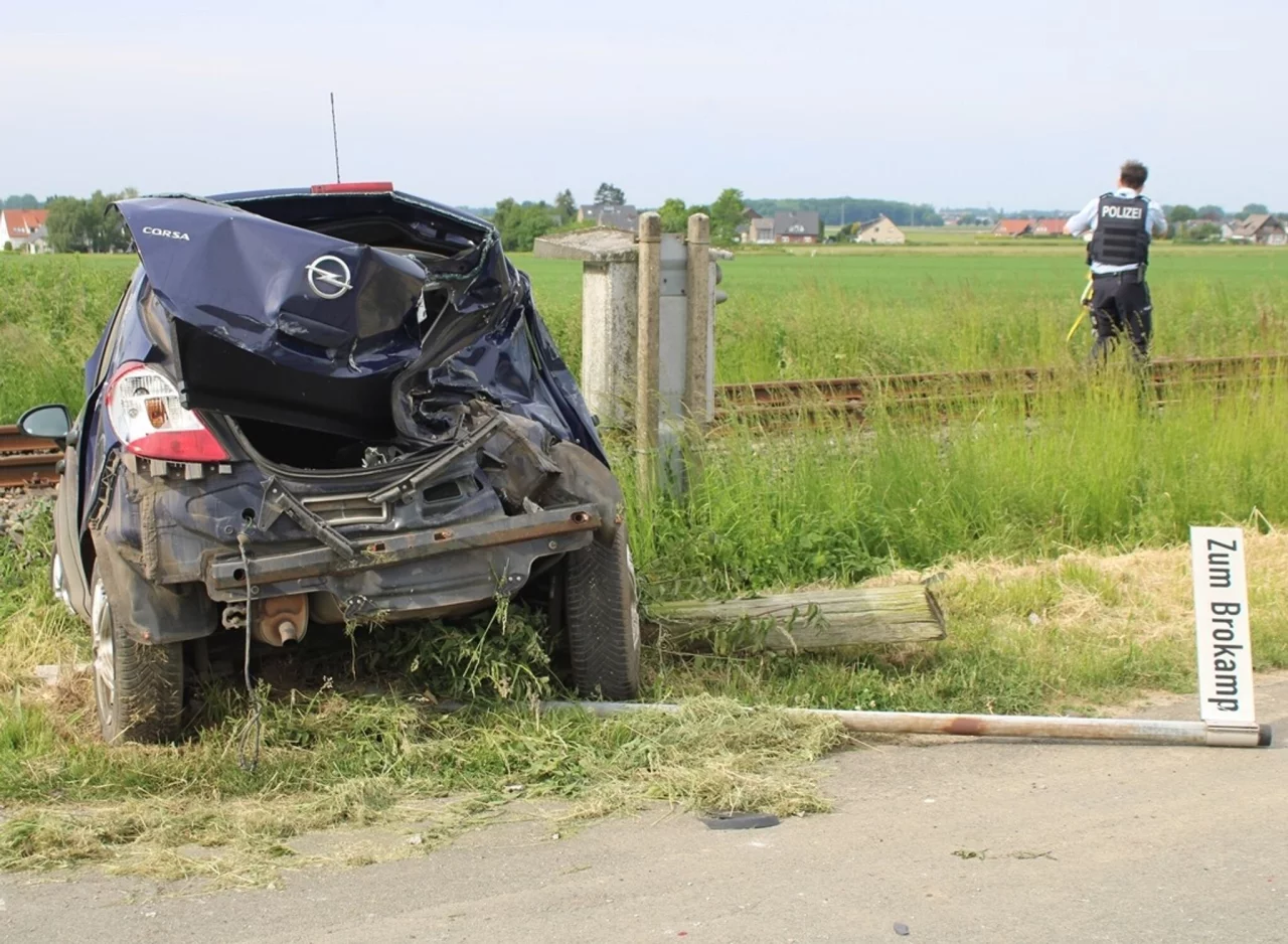 Auto stößt an Bahnübergang mit Zug zusammen