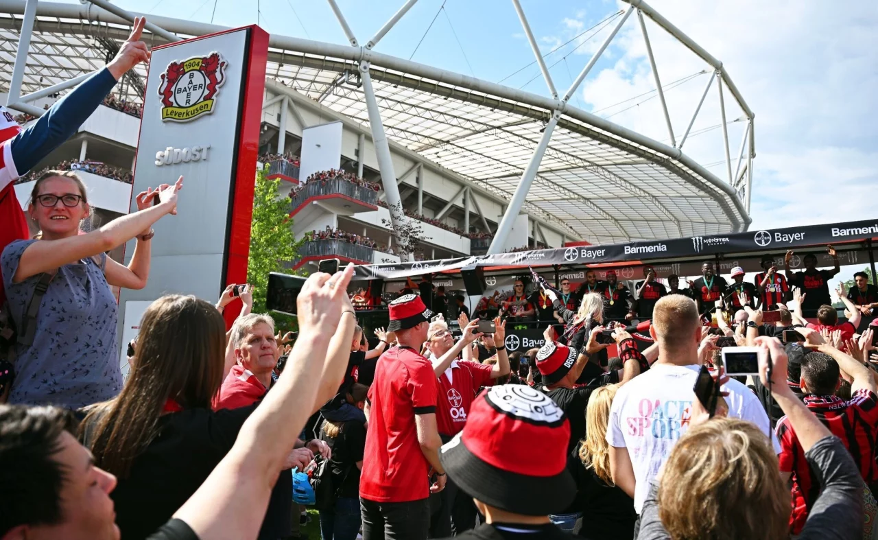 Rund 40.000 Fans haben in der BayArena die Mannschaft von Double-Sieger Bayer Leverkusen gefeiert. Spieler und Trainer Xabi Alonso hatten sich nach der Rückkehr aus Berlin am Sonntag zunächst in das Goldene Buch der Stadt Leverkusen eingetragen und fuhren dann auf einem offenen Truck zum Stadion. Auf dem Weg dorthin jubelten ihnen mehrere Tausend Fans zu. Nach dem erstmaligen Gewinn der deutschen Fußball-Meisterschaft hatte Bayer mit dem 1:0 im Finale gegen den 1. FC Kaiserslautern am Samstag auch den DFB-Pokal geholt.