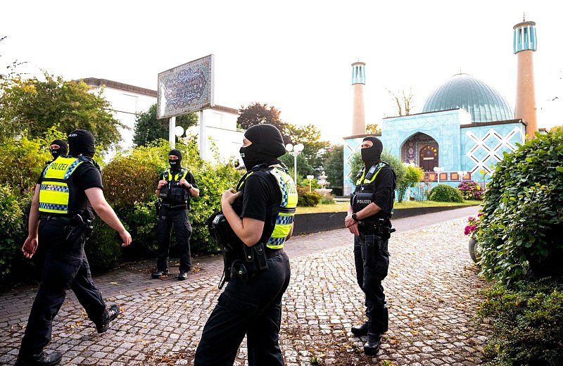 Dutzende Polizisten riegelten am frühen Morgen in Hamburg die Blaue Moschee ab. Laut einem Reporter der Deutschen Presse-Agentur begannen sie mit der Durchsuchung des schiitischen Gotteshauses. Der Verfassungsschutz stuft den Verein, der die Moschee betreibt, als extremistisch und vom Iran gesteuert ein. Laut einem dpa-Reporter stürmten etwa zeitgleich in Berlin mehrere Polizisten das Gebäude eines schiitischen Vereins.
