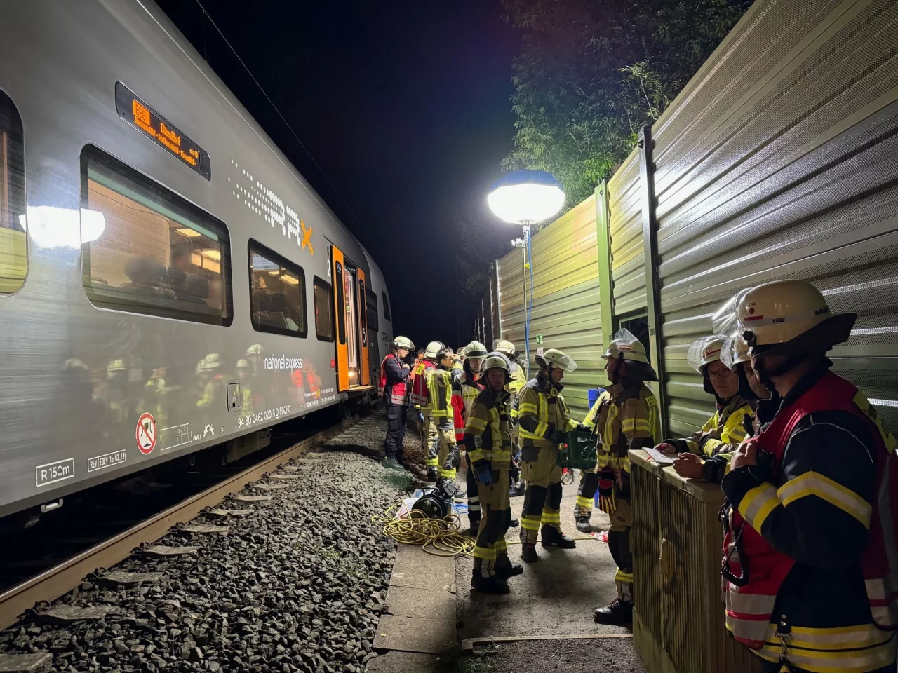 Der Zug stand schon mehrere Stunden auf dem Gleis, als Fahrgäste wegen Kreislaufproblemen infolge der ausgefallenen Klimaanlage die Feuerwehr riefen. Mithilfe der Einsatzkräfte konnten die Fahrgäste den Zug verlassen und einen Betonstreifen an einer Lärmschutzwand aufsuchen, wie die Feuerwehr mitteilte.
