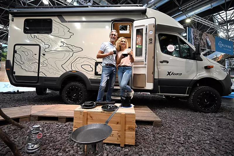 Auch für Kunden, die die üblichen Wege mal verlassen wollen, gibt es Reisemobile. Hersteller Eura Mobil zeigt auf der Messe sein neues Modell «Xtura», allradbetrieben auf Basis des Mercedes-Kleintransporters Sprinter.
