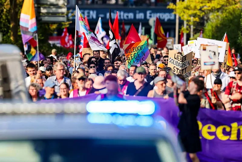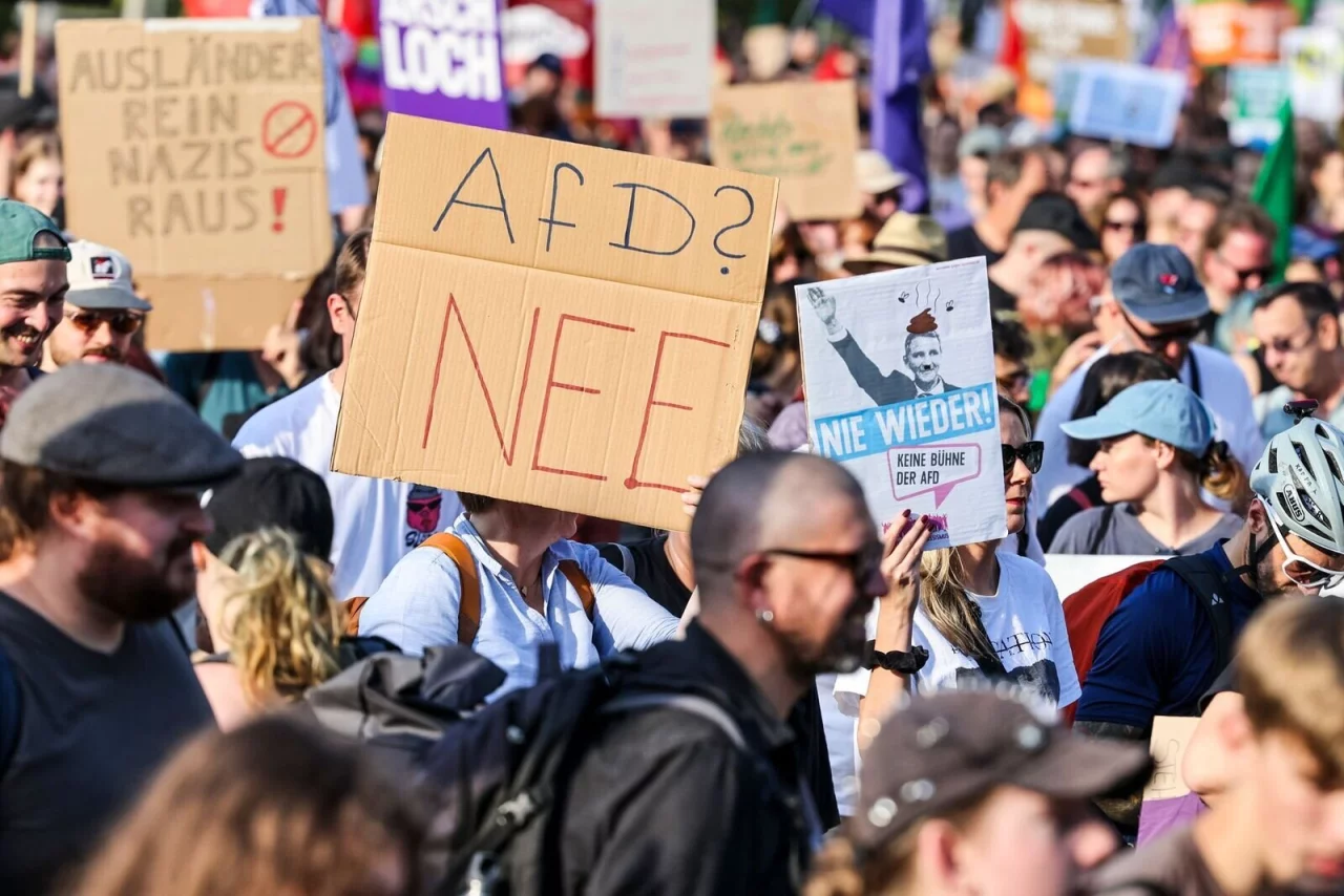 Unter den etwa 200 Menschen im Publikum der Philharmonie gaben sich daraufhin einige Personen als Gegner der AfD zu erkennen, die Parolen wie «Faschisten raus» und «Nazis raus» riefen. Sie wurden von Sicherheitsleuten aus dem Raum gebracht. Unter den Sitzen fanden sich schätzungsweise 25 Mini-Elektrogeräte, von denen die schrillen Piepsgeräusche kamen.