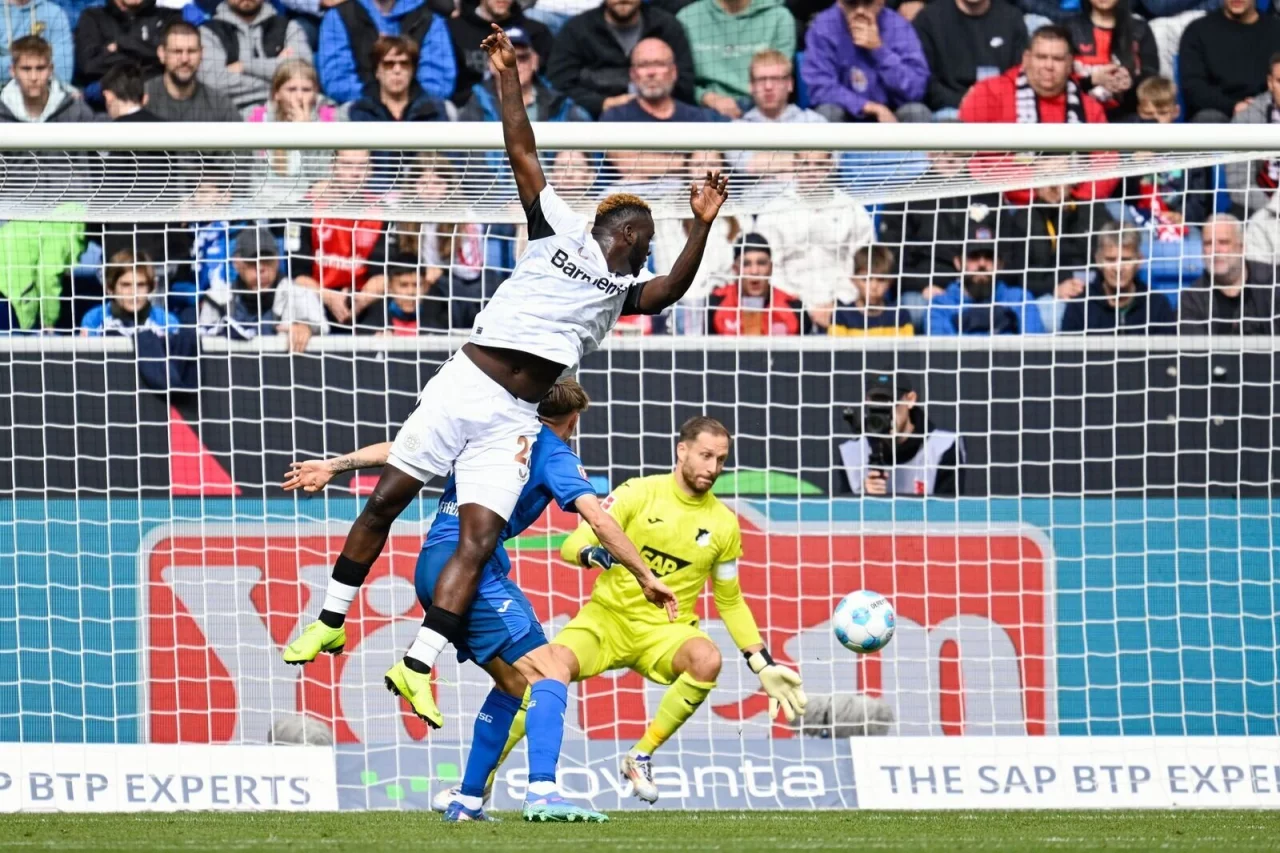 Kurz vor der Pause waren die Gäste wieder am Drücker. Erst rettete Baumann mit einer starken Parade gegen den frei durchgelaufenen Boniface, dann TSG-Verteidiger Kevin Akpoguma bei einem Wirtz-Schlenzer per Kopf auf der Linie.