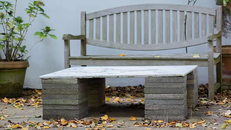 Geblieben sind einige überraschende Einrichtungsdetails, die noch auf Beuys zurückgehen. So etwa der Gartentisch im Innenhof, den Beuys aus vier zu Türmchen gestapelten einfachen quadratischen Steinplatten baute und eine dann eine weiße Marmorplatte daraufsetzte.