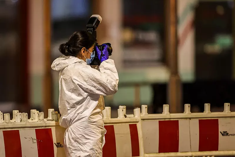 Kurz nach Mitternacht wird es hell am Krefelder Hauptbahnhof. Die Spurensicherung hat am benachbarten Kino-Komplex das Flutlicht eingeschaltet. Beamte in weißen Schutzanzügen fotografieren blutige Kleidungsstücke und zertrümmerte Glasscheiben. Drinnen warten Kino-Mitarbeiter darauf, die Blutspuren entfernen zu dürfen.