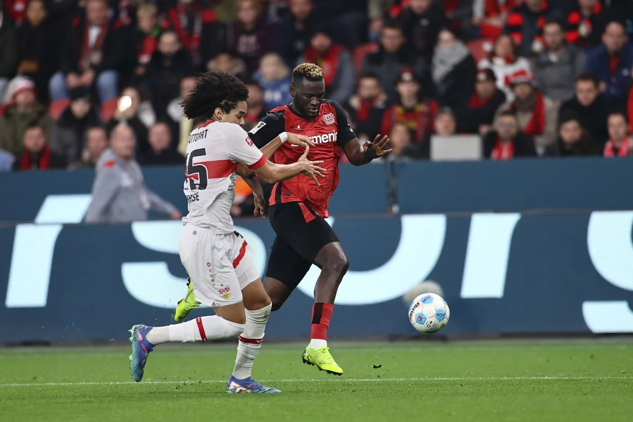 Beide kamen kaum zum Zug, weil sie von Granit Xhaka und Robert Andrich immer wieder früh gestört wurden. So fanden die Stuttgarter so gut wie gar nicht statt und hatten Glück, nicht in Rückstand zu geraten. Edmond Tapsoba (41.) und Victor Boniface (45.+1) hatten per Kopf weitere gute Chancen.