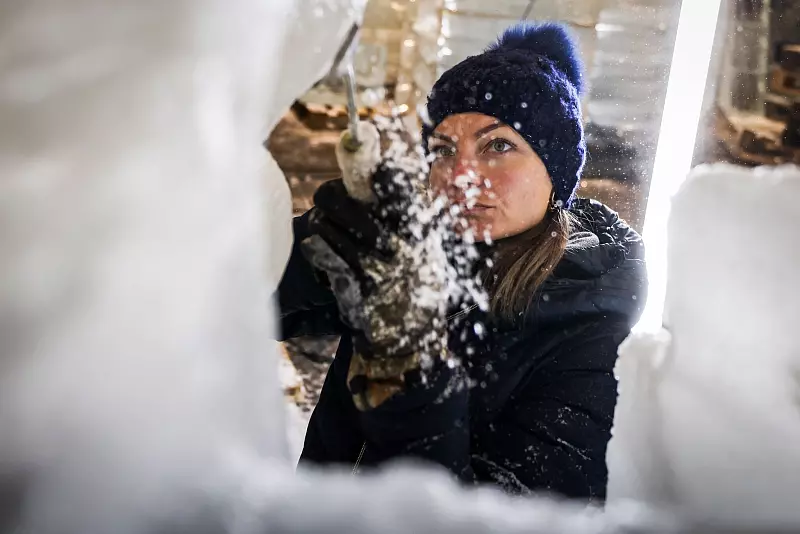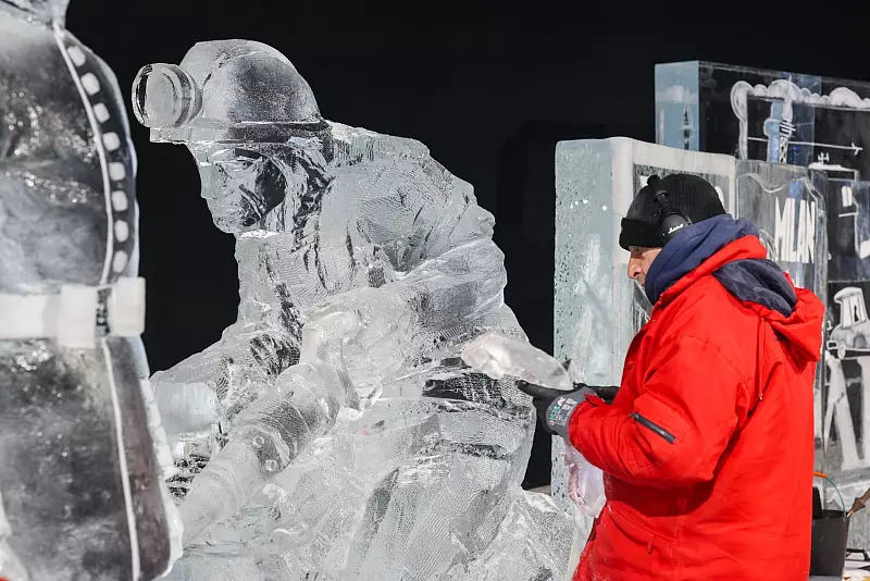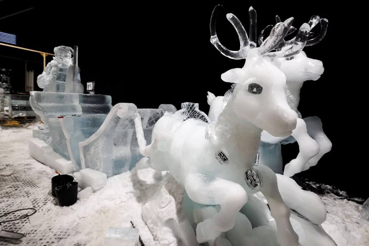 Seit knapp zwei Wochen bringen 35 internationale Künstler 500 Eisblöcke und 200 Tonnen Kunstschnee in Form. Das Material wird mit Kettensägen, Meißeln und Messern bearbeitet. So entsteht etwa der Förderturm von Zeche Zollverein, die Wahrzeichen von Berlin, Paris, und Amsterdam oder Figuren von Marilyn Monroe und Elvis Presley.