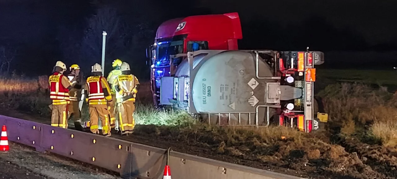 Die Einsatzkräfte erkannten demnach aufgrund von Warntafeln, dass der Container mit einem umweltgefährdenden Gefahrstoff beladen war. Da zunächst aber unklar war, um welchen Stoff es sich konkret handelte, sperrte die Feuerwehr die Einsatzstelle. Der Verkehr wurde daraufhin in Fahrtrichtung Heinsberg komplett gesperrt. Insbesondere im Feierabendverkehr bildeten sich laut Feuerwehr kilometerlange Staus auf der Autobahn und den angrenzenden Umgehungsstrecken.