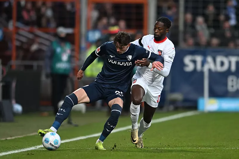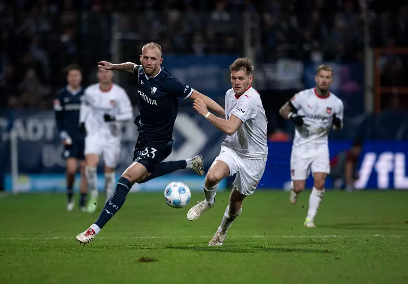 Bochums Philipp Hofmann (l) setzt sich gegen Tim Siersleben durch. - © Fabian Strauch/dpa