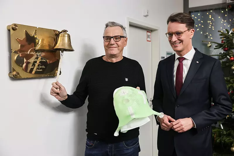 Der Regierungschef wies auf eine Glocke in der Klinik hin, die Bestrahlungspatienten nach Abschluss ihrer Therapie läuten dürfen. «Das Läuten der Glocke hört man im ganzen Behandlungszentrum. Das macht anderen Patienten Mut, es verbreitet Zuversicht», sagte Wüst.