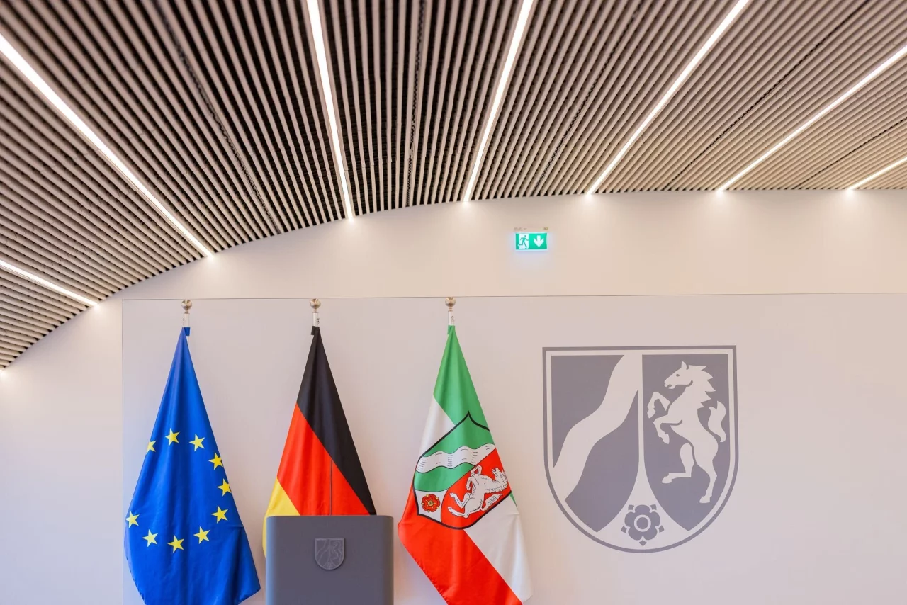 Der große Raum in der vierten Etage der Staatskanzlei wird von Ministerpräsident Hendrik Wüst (CDU) etwa für Empfänge, Ehrungen und festliche Abendessen genutzt. In den Decken wurden LED-Leuchten der Firma verbaut, bei der es am Dienstag nach dpa-Informationen - wie auch beim landeseigenen Baubetrieb BLB - Durchsuchungsmaßnahmen gegeben hat. Die Staatsanwaltschaft Wuppertal wollte sich aus «ermittlungstaktischen Gründen» nicht dazu äußern.
