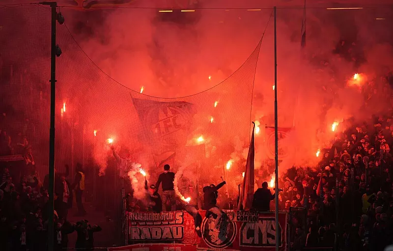 Fast schon Normalität: Nach Pyroeinsatz der Kölner Fans und der dadurch bedingten Rauchentwicklung unterbrach Schiedsrichter Christian Dingert schon in der zweiten Minute für kurze Zeit das Spiel. Dramatischer war der Zwischenfall Stunden vor dem Spiel im Hamburger Stadtteil, als laut Polizei ca. 200 HSV-Fans Kölner Anhänger angegriffen hatten.