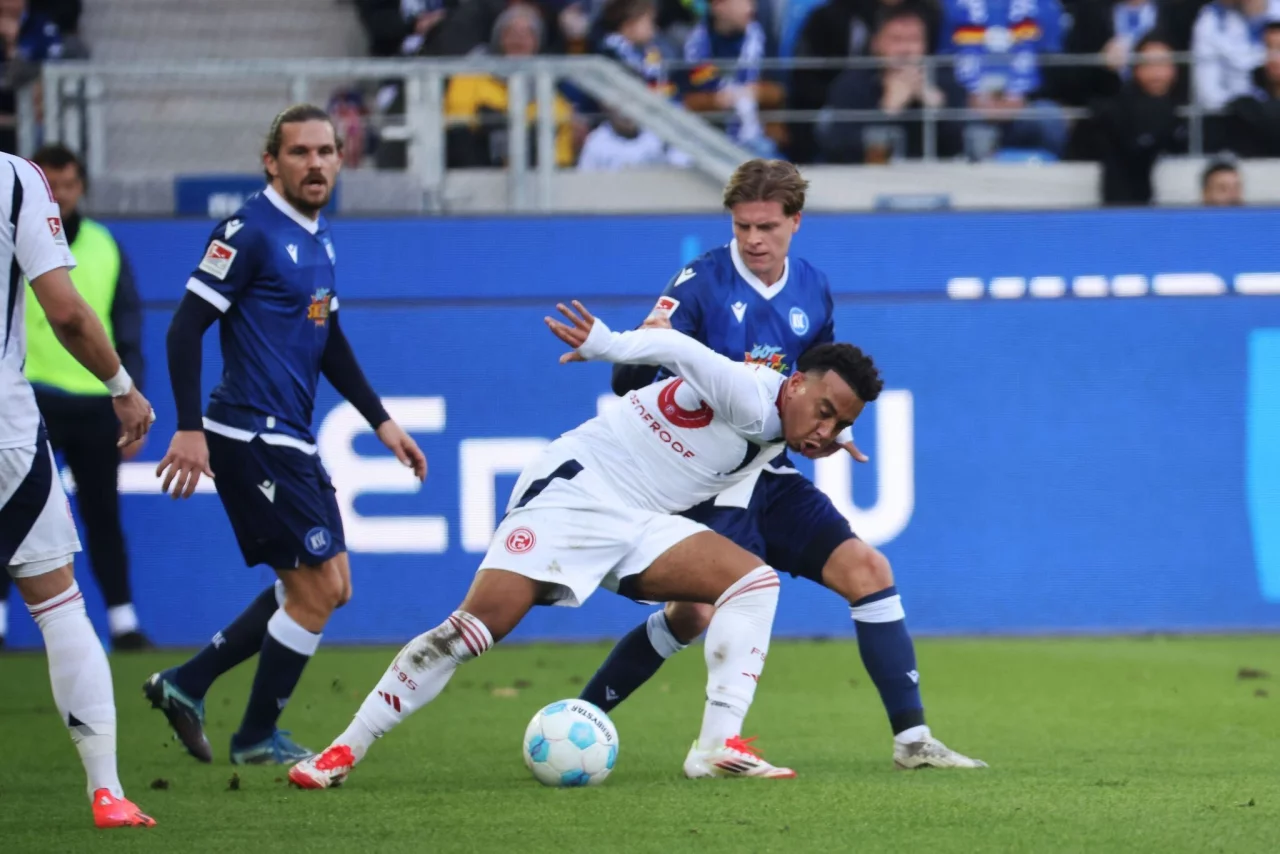 Fortuna Düsseldorf hat mit großem Kampf ein weiteres Abrutschen in der Tabelle der 2. Fußball-Bundesliga verhindert. Nach einem 0:2-Pausenrückstand holten die Rheinländer vor 30.374 Zuschauern noch einen 3:2-Auswärtssieg beim Karlsruher SC. Mikkel Kaufmann (8. Minute) und Robin Heußer (22.) erzielten die Treffer des KSC. Für Düsseldorf trafen Dzenan Pejcinovic (47.) und zweimal Dawid Kownacki (81./Foulelfmeter, 90.+3). Die Fortuna hat damit weiter Kontakt zur Aufstiegszone.